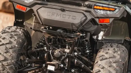 Αν υπάρχει ένα χαρακτηριστικό που κάνει το CFORCE 450L να ξεχωρίζει πραγματικά στην κατηγορία του, είναι η μετάδοση. Η CFMOTO χρησιμοποιεί CVT (Continuously Variable Transmission) της καναδικής εταιρείας CVTech, έναν κατασκευαστή εξειδικευμένο αποκλειστικά στα συστήματα μετάδοσης για ATV και οχήματα παντός εδάφους. Αυτή η εξειδίκευση μεταφράζεται σε υψηλότερη αξιοπιστία, καλύτερη ανταπόκριση και μακρύτερη διάρκεια ζωής από ένα γενικό CVT. Ο αναβάτης δεν χρειάζεται να ανησυχεί για αλλαγές ταχυτήτων: το CVTech αναλαμβάνει αυτόματα, αφήνοντας τον χειριστή να εστιάζει στον έλεγχο του οχήματος και στη δουλειά που έχει να κάνει.