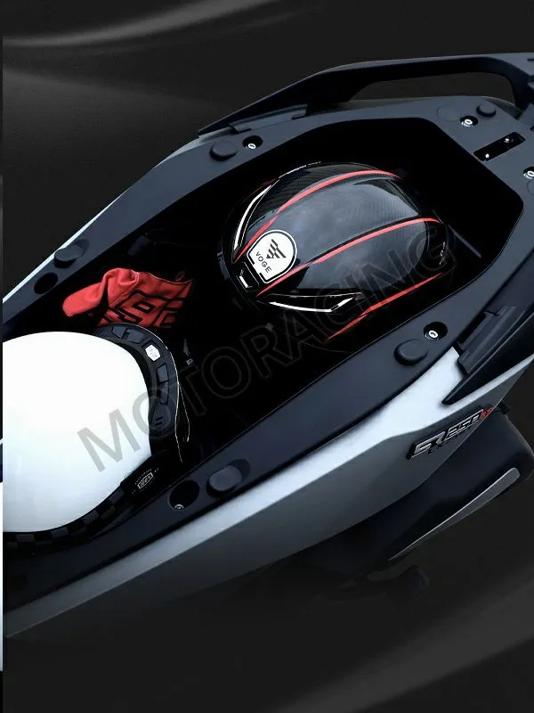 Το SR3 ακολουθεί τους δικούς του κανόνες στην εμφάνιση και χαρακτηρίζεται από έντονες ακμές στα πλαστικά του μέρη, με τα πλαϊνά αεροδυναμικά βοηθήματα να προσφέρουν στο μοντέλο μια πλέον σπορτίβ εικόνα, φέρνοντάς μας κατά νου μια μικρή γεύση από το MotoGP! Στη σχεδιαστική ταυτότητα κυριαρχούν τα Full Led φωτιστικά σώματα με τα ενσωματωμένα φλας, που με τη σειρά τους δίνουν στο SR3 χαρακτηριστικά από τον κόσμο των μοτοσυκλετών supersport. Καθόσον το νέο scooter της Voge ασπάζεται την κατηγορία GT, απευθυνόμενο και σε όλους όσους θέλουν να κάνουν διαδρομές και εκτός του αστικού κύκλου, ο κατασκευαστής φρόντισε να παρέχει στον αναβάτη την άνεση και την αεροδυναμική προστασία που απαιτείται. Βλέπουμε λοιπόν τα κάτω πλαϊνά τμήματα του φέρινγκ να επεκτείνονται προς τα έξω, έχοντας σαν στόχο την απόλυτη κάλυψη των κάτω άκρων του οδηγού, όπως επίσης και έναν εύκολα ρυθμιζόμενο σε ύψος ανεμοθώρακα. Επίσης, πάντα στο βασικό εξοπλισμό, συναντάμε θερμαινόμενα γκριπ που σίγουρα αυξάνουν την άνεση του οδηγού, ειδικά στις κρύες χειμωνιάτικες συνθήκες. Από την πλευρά του, ο συνεπιβάτης απολαμβάνει μια εργονομικά μελετημένη θέση, όπως επίσης και μεγάλο χώρο για τα πόδια του. Παράλληλα, οι έξυπνα σχεδιασμένες χειρολαβές και τα μεγάλα σταθερά μαρσπιέ είναι παράγοντες που βελτιώνουν ακόμα περισσότερο την άνεσή του.