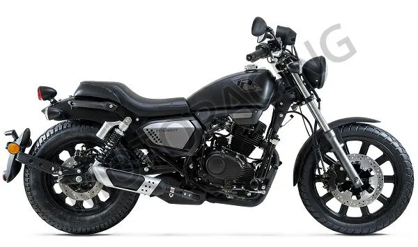 Βασίζεται σε ένα ανθεκτικό ατσάλινο σωληνωτό πλαίσιο. Η ανάρτηση αποτελείται από συμβατικό τηλεσκοπικό πιρούνι με διαδρομή 120 χλστ και δύο αμορτισέρ που διαθέτουν ρύθμιση προφόρτισης ελατηρίου και διαδρομή 55 χλστ.