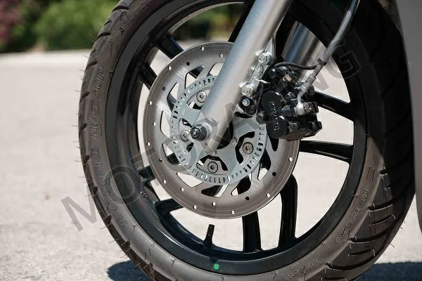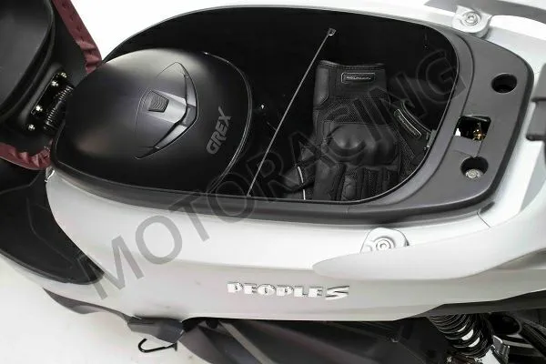 Ο τροχός μπροστά παραμένει στις 16”, ενώ ο αντίστοιχος πίσω είναι στις 14” προκειμένου να εξοικονομηθεί ο απαραίτητος χώρος κάτω από τη σέλα, όπου μπορούν να φιλοξενηθούν ένα full face κράνος και αρκετά άλλα αντικείμενα. Υπάρχει μάλιστα και αφαιρούμενο διαχωριστικό, που αφενός επιτρέπει να μεταβάλλεται ο χώρος αυτός ανάλογα με τις εκάστοτε απαιτήσεις του αναβάτη και αφετέρου εμποδίζει την μετακίνησή των αντικειμένων που φιλοξενούνται κάτω από τη σέλα. Ο χώρος φωτίζεται από ένα φωτιστικό LED και διαθέτει μια δεύτερη θύρα USB (η πρώτη βρίσκεται στο τιμόνι) για φόρτιση μεγαλύτερων ηλεκτρονικών συσκευών. Σημαντικό στοιχείο η διατήρηση του επίπεδου πατώματος, που συνδυαστικά με το υπάρχον άγκιστρο χειραποσκευών αυξάνει σημαντικά τη δυνατότητα μεταφοράς αντικειμένων.